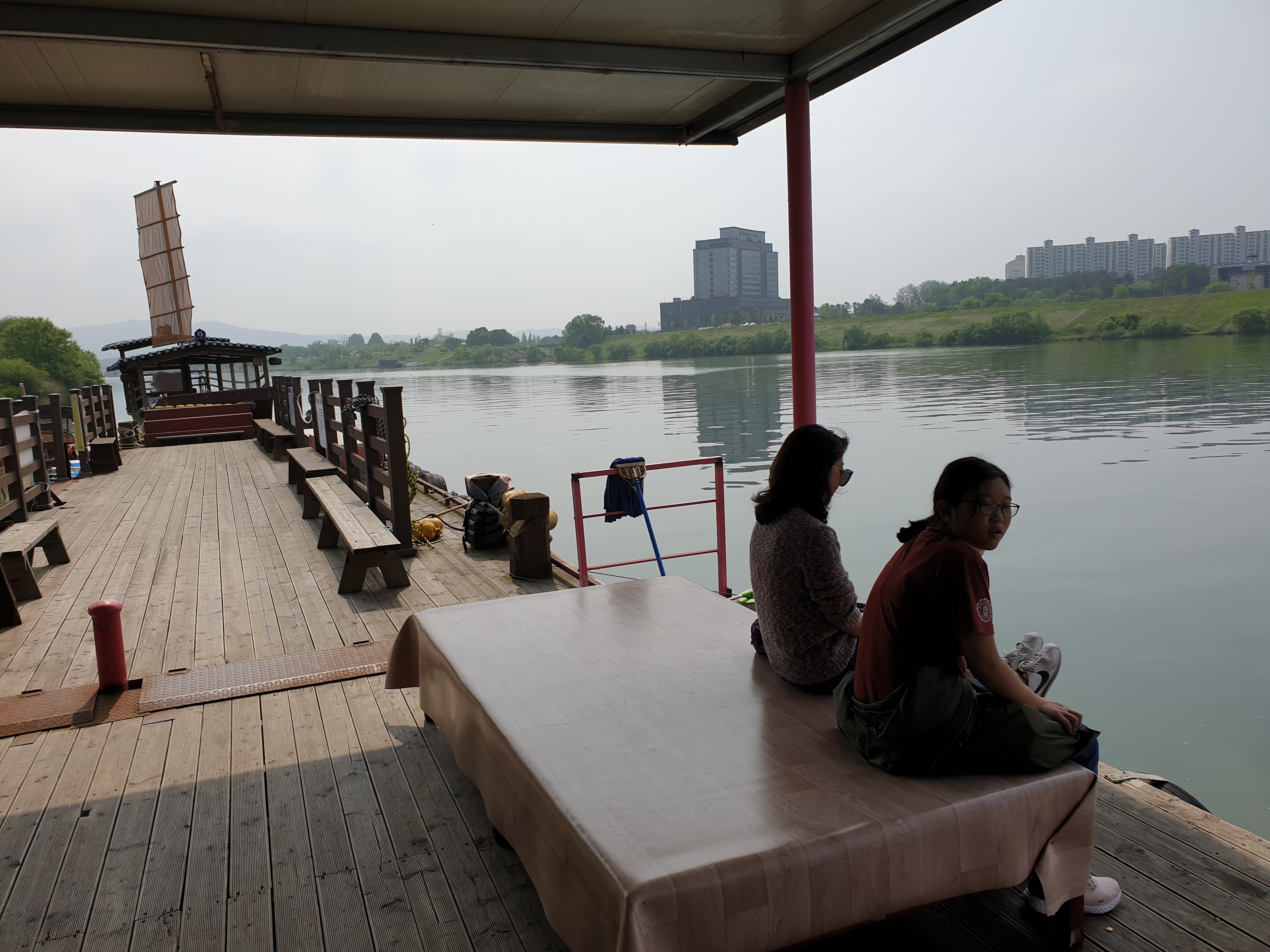 오리배를 타고 마님과 따님은 편안하게 풍광을 즐기시고요. 저는 평소 자전거 출퇴근으로 다져진 장딴지 근육을 풀가동해서 열심히 페달을 밟습니다. "강변 반대편으로 가자고? 알았어! 잠시만 기다려 주세요!" 영차, 영차, 열심히 페달을 밟습니다.