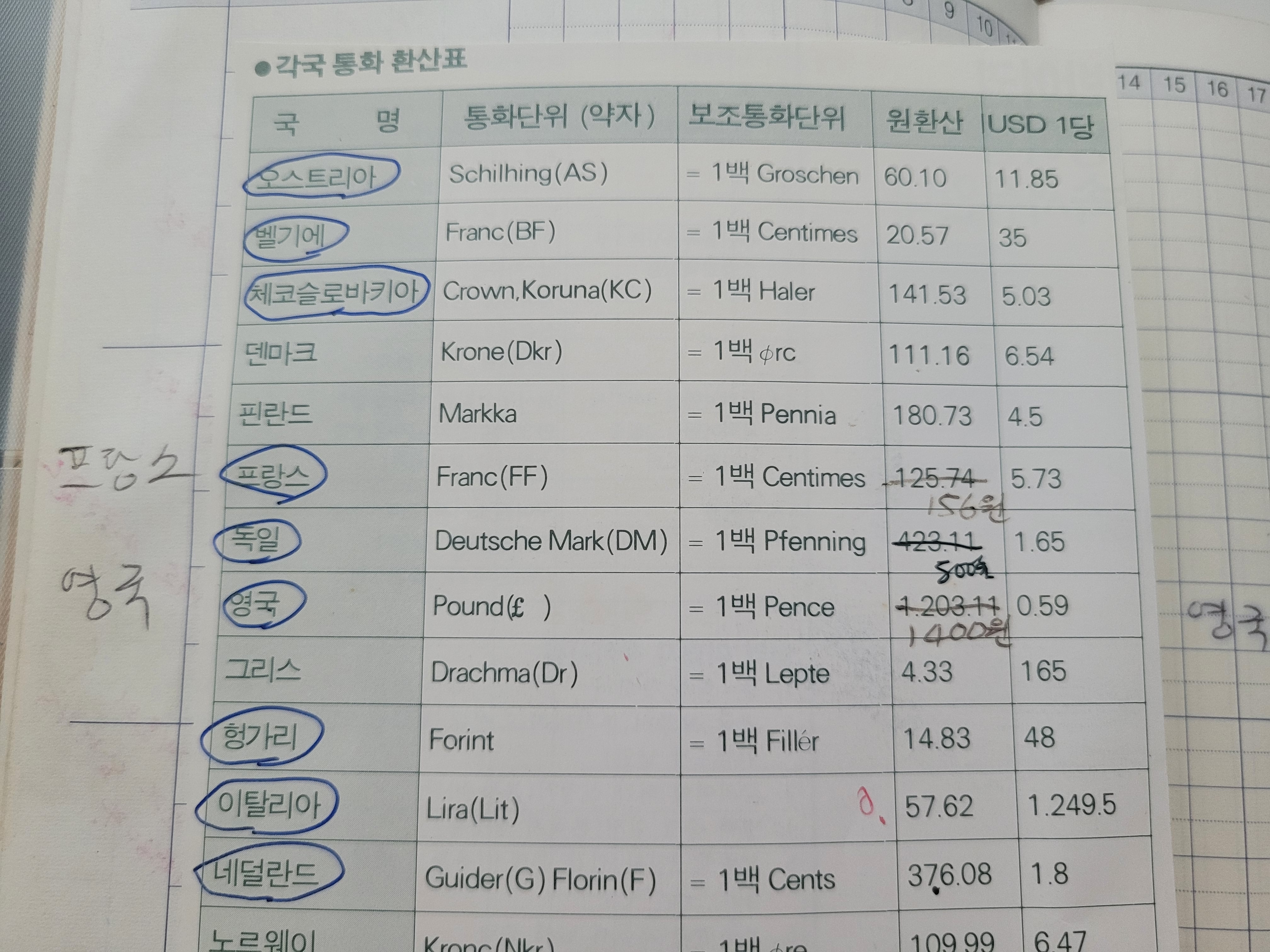 각국 통화 환산표가 있네요. 유로 통화 단일화 이전에는 나라마다 다니며 환전하는 것도 일이었어요. 요즘은 여행다니기 얼마나 좋은 시절인지 다시 한번 실감합니다.