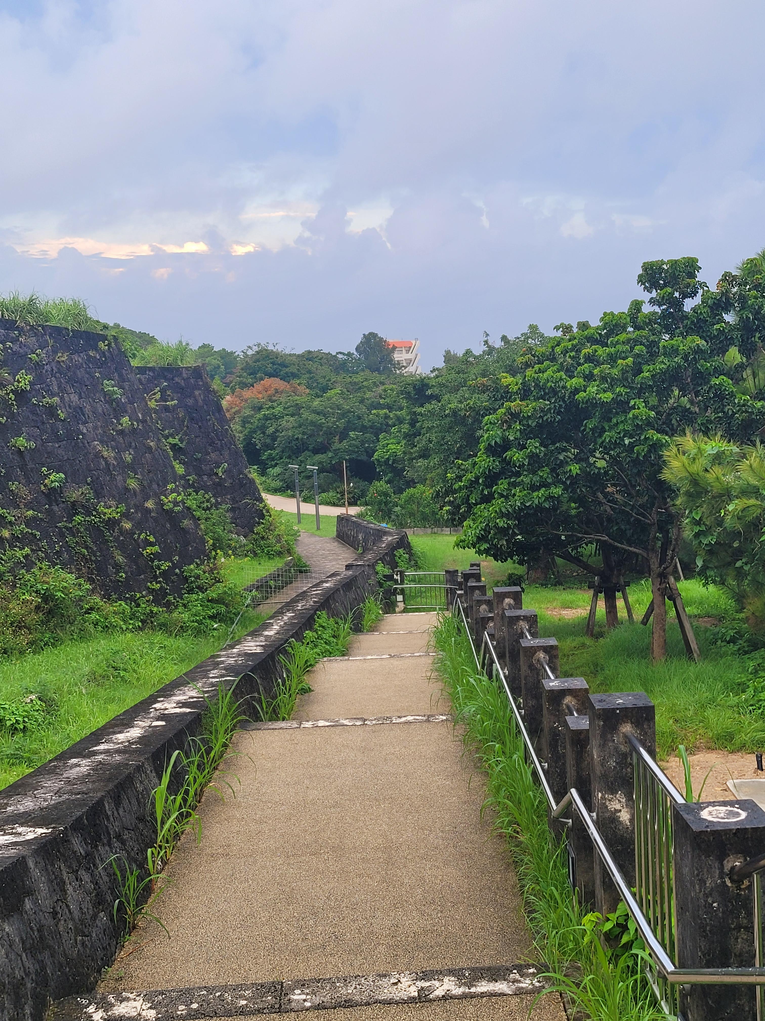 슈리성은 8시 30분에 문을 여는데요. 저는 7시에 도착했어요. 일단 성곽 외벽 돌담길을 따라 걷습니다. 한양도성 순성길과 비슷하네요.